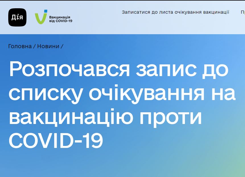 Від сьогодні, 1 березня 2021 року, в Україні є можливість записатись до списку очікування на вакцинацію проти COVID-19. Електронний список очікування формується, щоб краще спланувати та організувати процес вакцинації.