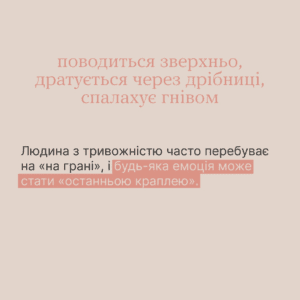 ℹ️ Якщо ви чи ваші близькі страждаєте на постійну тривожність, спробуйте щоденні вправи й техніки для заспокоєння, перегляньте свій графік — переконайтеся, що достатньо відпочиваєте, повноцінно харчуєтеся, знаходите час для себе. Якщо вам не вдається подолати тривожність самотужки, не соромтеся звернутися до спеціаліста.